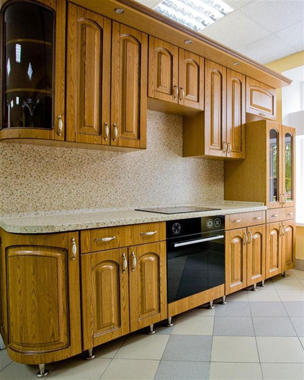 На большинство покупателей кухни с фасадами из МДФ, покрытые пленкой и патиной, производят неизгладимое впечатлением. Такая мебель изготавливается с применением технологии искусственного старения, благодаря чему она выглядит более благородно и элегантно. Фасады кухни состоящие из МДФ покрываются пленкой, а сверху обрабатываются патиной, которая придает мебели «налет времени». Дизайн мебели приобретает оттенок антикварности. Такие кухни обычно заказывают романтичные натуры, которые находят прелесть в старине, но при этом хотят чтобы все было по-современному удобно, функционально и эргономично.
